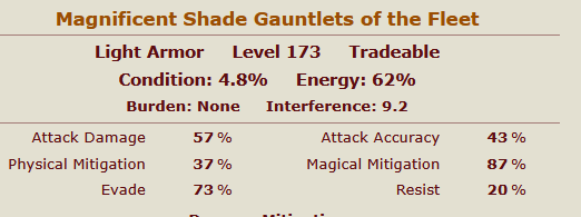 html: /<div class="eq"><div class="eqt">(.+?) (?:Level (?:(\d+)|(Unassigned))|Tier (\d+) \/ (\d+) \/ (\d+)) <span>(Tradeable|Untradeable|Soulbound)<\/span><\/div><div class="eqr">Condition: (\d+)% Energy: (?:(\d+)%|(N\/A))<\/div>/,
